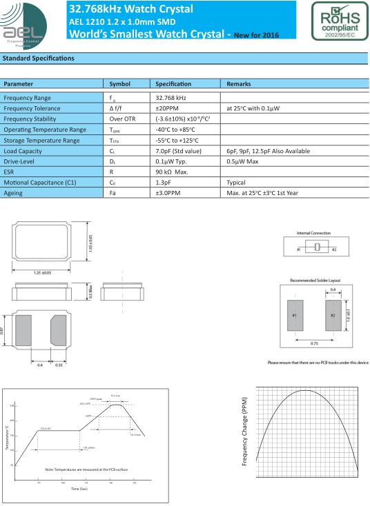 AEL晶振,AEL1210晶振,無源兩腳晶振,32.768K時鐘晶體具有小型,薄型,輕型的貼片晶振表面音叉型晶體振蕩器,產(chǎn)品具有優(yōu)良的耐熱性,耐環(huán)境特性,可發(fā)揮晶振優(yōu)良的電氣特性,符合RoHS規(guī)定,滿足無鉛焊接的高溫回流溫度曲線要求,金屬外殼的封裝使得產(chǎn)品在封裝時能發(fā)揮比陶瓷振蕩器外殼更好的耐沖擊性.