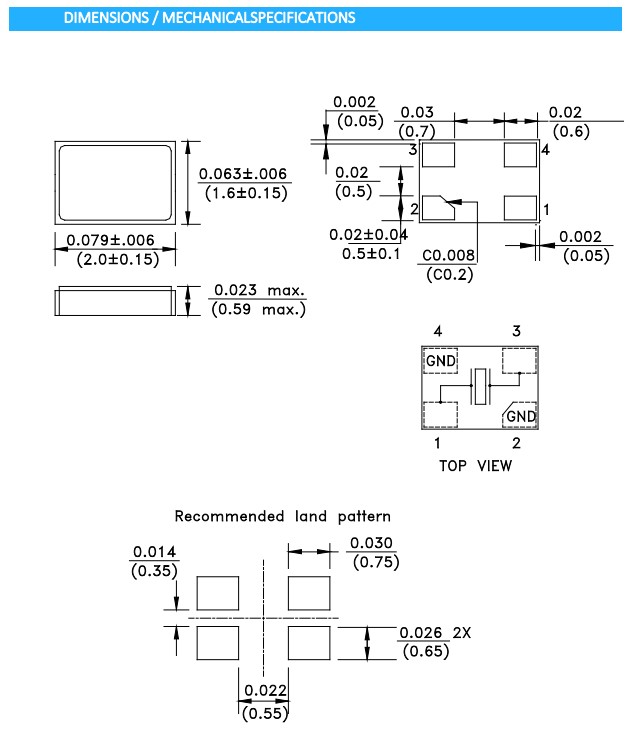 艾爾2016mm晶振,ELM11-16.000MHz-D7X-T,智能穿戴設(shè)備晶振,尺寸圖