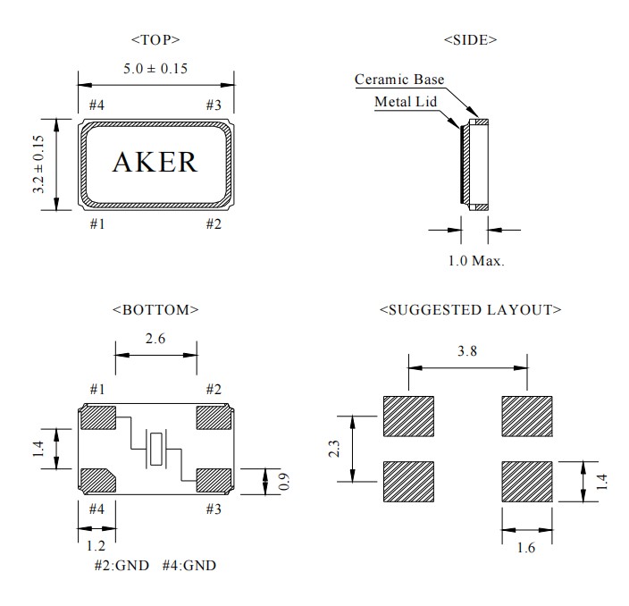AKER小體積晶振,C5S-40.000-18-3050-X-R,無線網(wǎng)絡(luò)晶振,尺寸圖