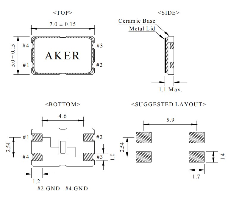 外形尺寸:7.0x5.0mm 四墊腳貼片晶振