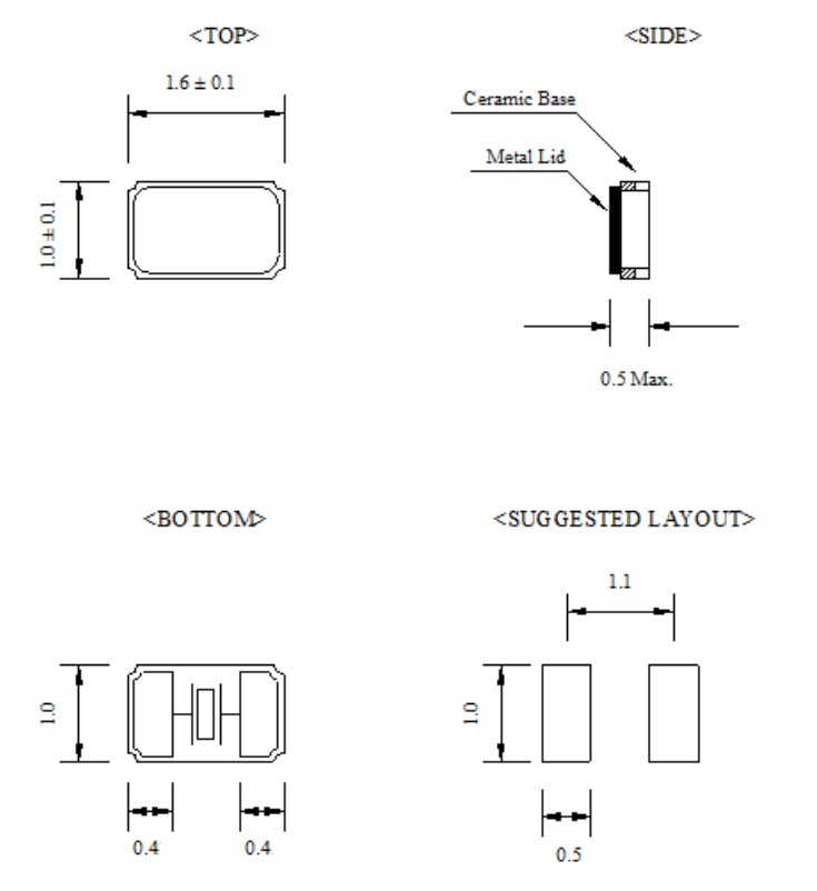 AKER超小型晶振,CTS1-32.768-12.5-20-X-R,智能手機(jī)晶振,1610mm諧振器,可穿戴設(shè)備晶振,尺寸圖