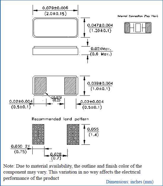 | 頻率溫度特征 | f_tem | ±30 × 10-6/-20°C ~ +70°C | 超出標(biāo)準(zhǔn)的規(guī)格請聯(lián)系我們. |