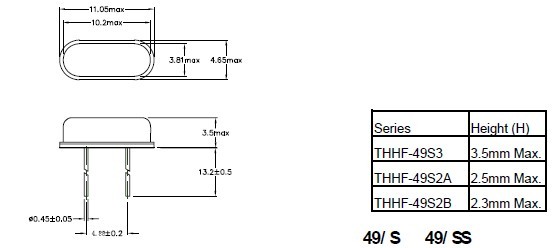 石英晶體諧振器49S尺寸