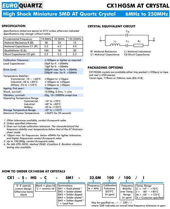 Euroquartz晶振,CX1HGSMAT晶振,CX1SHGCSM1-32.0M100/100/I晶振,貼片晶振本身體積小,超薄型石英晶體振蕩器,特別適用于有目前高速發(fā)展的高端電子數(shù)碼產(chǎn)品,因?yàn)榫д癖旧硇⌒突枨蟮氖袌?chǎng)領(lǐng)域,小型,薄型是對(duì)應(yīng)陶瓷振蕩器(偏差大)和普通的石英晶體振蕩器(偏差小)的中間領(lǐng)域的一種性價(jià)比較出色的產(chǎn)品.產(chǎn)品廣泛用于筆記本電腦,無(wú)線電話,衛(wèi)星導(dǎo)航SSD,USB,Blu-ray等用途,符合無(wú)鉛焊接的高溫回流焊曲線特性.
