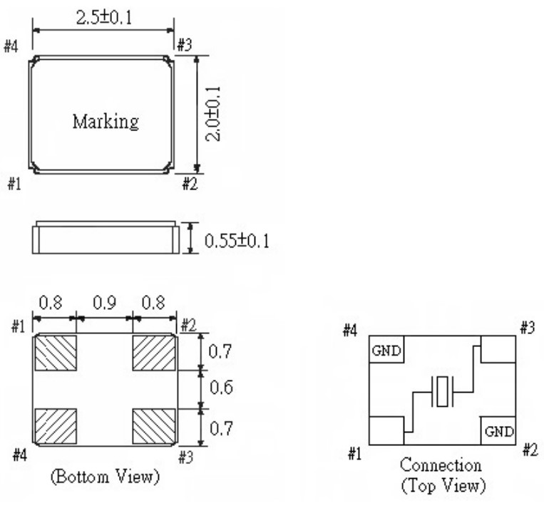 F2520A-30-50-K-30-F-34.000MHz,2520mm,FCD-Tech藍牙晶振,F2520A,石英晶體諧振器,尺寸圖