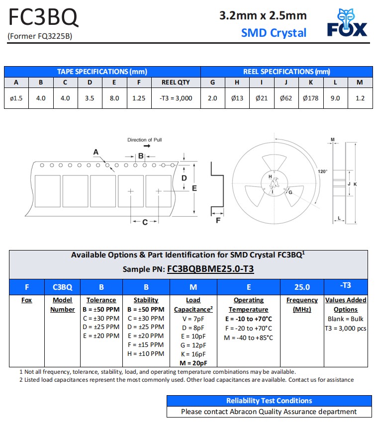| FQ3225BR-12.000 | Fox晶振 | FQ3225B | 12MHz | ±50ppm |