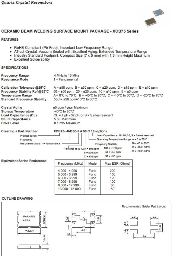XCB75-7M000-1A50D18,7050mm,Fortiming品牌,7MHz,XCB75,四腳貼片晶振,美國進(jìn)口晶振,F(xiàn)ortiming晶振,富通晶振,型號(hào):XCB75系列,編碼為:XCB75-7M000-1A50D18,頻率為:7MHz,精度:±50ppm,頻率穩(wěn)定性:±50ppm,工作溫度范圍:-20℃至+70℃,負(fù)載:18pF,小體積晶振尺寸:7.0x5.0x1.3mm封裝,四腳貼片晶振,石英晶振,7050晶振,SMD晶振,無源晶振,石英晶體諧振器。具有超小型,輕薄型,高性能,卓越的可解性特點(diǎn)。應(yīng)用于:汽車電子晶振,通訊設(shè)備晶振,無線網(wǎng)絡(luò)晶振,藍(lán)牙晶振,智能家居晶振,數(shù)碼電子晶振等應(yīng)用。