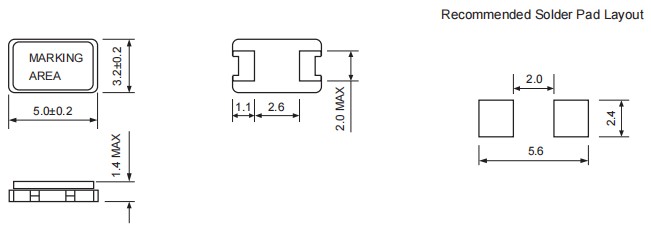 ●超小型設計(5x3.2mm),最大高度1.4mm