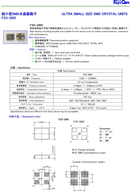 Fujicom晶振,FSX-2MS晶振,無源四腳晶振,貼片晶振本身體積小,超薄型石英晶體振蕩器,特別適用于有目前高速發(fā)展的高端電子數(shù)碼產(chǎn)品,因?yàn)榫д癖旧硇⌒突枨蟮氖袌鲱I(lǐng)域,小型,薄型是對應(yīng)陶瓷振蕩器(偏差大)和普通的石英晶體振蕩器(偏差小)的中間領(lǐng)域的一種性價(jià)比較出色的產(chǎn)品.產(chǎn)品廣泛用于筆記本電腦,無線電話,衛(wèi)星導(dǎo)航SSD,USB,Blu-ray等用途,符合無鉛焊接的高溫回流焊曲線特性.