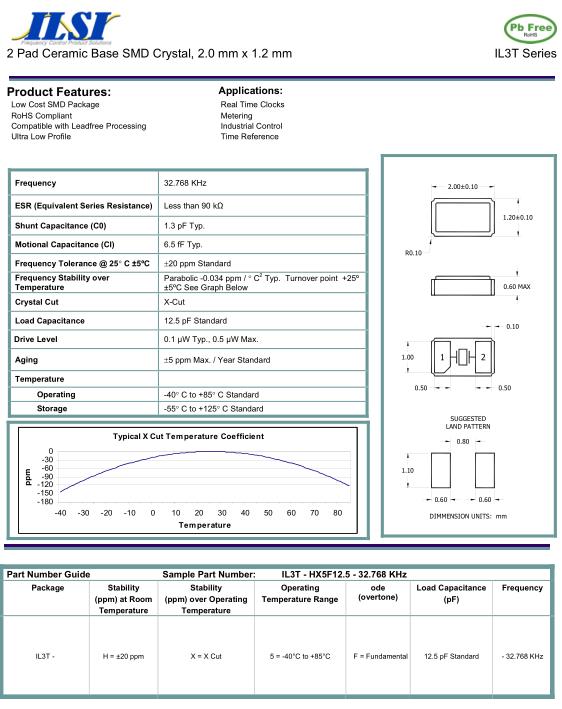 ILSI晶振,IL3T晶振,IL3T-HX5F12.5-32.768KHz晶振,32.768K時鐘晶體具有小型,薄型,輕型的貼片晶振表面音叉型晶體振蕩器,產(chǎn)品具有優(yōu)良的耐熱性,耐環(huán)境特性,可發(fā)揮晶振優(yōu)良的電氣特性,符合RoHS規(guī)定,滿足無鉛焊接的高溫回流溫度曲線要求,金屬外殼的封裝使得產(chǎn)品在封裝時能發(fā)揮比陶瓷振蕩器外殼更好的耐沖擊性.