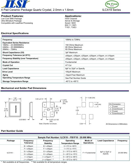 ILSI晶振,ILCX19晶振,ILCX19-FB1F18-20.000MHz晶振,貼片晶振本身體積小,超薄型石英晶體振蕩器,特別適用于有目前高速發(fā)展的高端電子數(shù)碼產(chǎn)品,因?yàn)榫д癖旧硇⌒突枨蟮氖袌?chǎng)領(lǐng)域,小型,薄型是對(duì)應(yīng)陶瓷振蕩器(偏差大)和普通的石英晶體振蕩器(偏差小)的中間領(lǐng)域的一種性價(jià)比較出色的產(chǎn)品.產(chǎn)品廣泛用于筆記本電腦,無(wú)線電話,衛(wèi)星導(dǎo)航SSD,USB,Blu-ray等用途,符合無(wú)鉛焊接的高溫回流焊曲線特性.