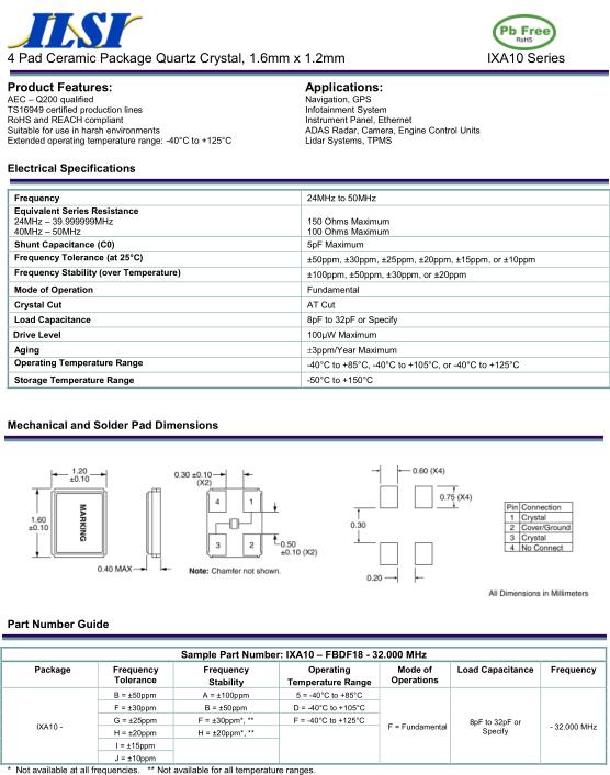 ILSI晶振,IXA10_A晶振,IXA10-FBDF18-32.000MHz晶振,貼片晶振本身體積小,超薄型石英晶體振蕩器,特別適用于有目前高速發(fā)展的高端電子數(shù)碼產(chǎn)品,因為晶振本身小型化需求的市場領(lǐng)域,小型,薄型是對應(yīng)陶瓷振蕩器(偏差大)和普通的石英晶體振蕩器(偏差小)的中間領(lǐng)域的一種性價比較出色的產(chǎn)品.產(chǎn)品廣泛用于筆記本電腦,無線電話,衛(wèi)星導(dǎo)航SSD,USB,Blu-ray等用途,符合無鉛焊接的高溫回流焊曲線特性.