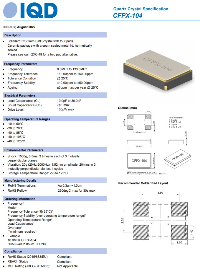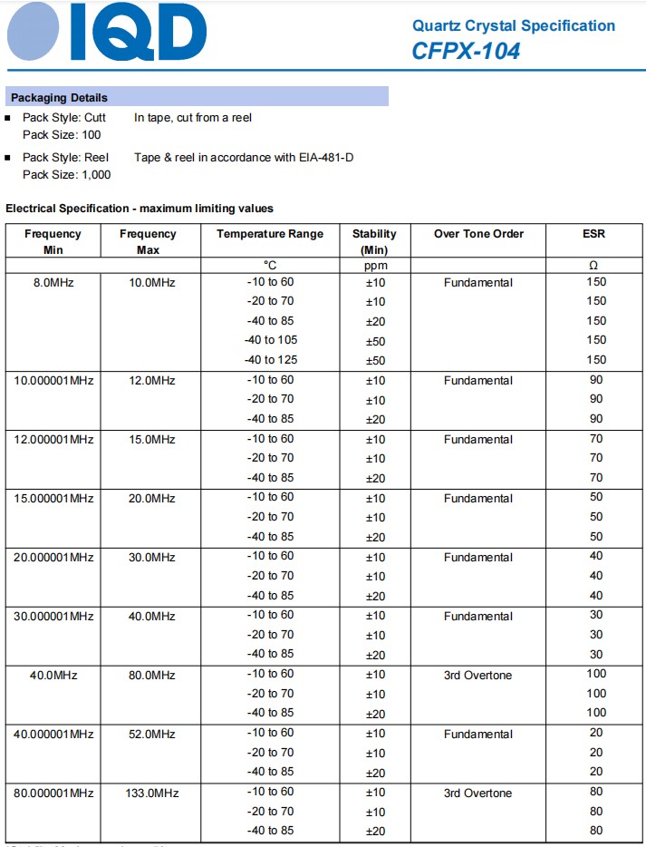 IQD伊克德石英晶體,CFPX-104,LFXTAL059528REEL,5032無(wú)源晶振,LFXTAL059531REEL,6G網(wǎng)絡(luò)晶振,參數(shù)表