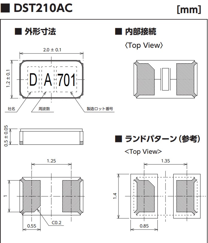 大真空KDSCrystal,DST210AC計(jì)時(shí)器晶振,1TJ125DR1AC054 尺寸圖