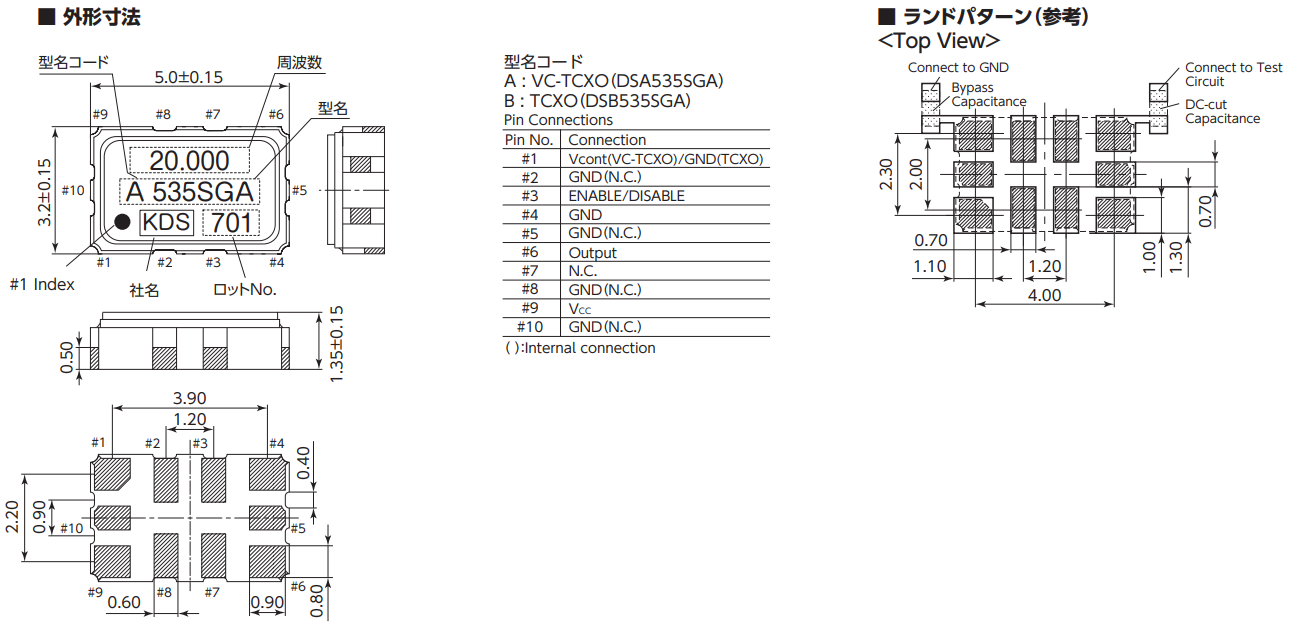 DSA535SGA壓控溫補(bǔ)晶振,日本大真空晶振,有源十腳晶振該體積產(chǎn)品最適合于GPS,以及衛(wèi)星通訊系統(tǒng),智能電話等多用途的高穩(wěn)定的頻率溫度特性晶振.為對應(yīng)低電源電壓的產(chǎn)品.(DC+1.8V ± 0.1V to +2.9V ± 0.1V 對應(yīng)IC可能) 高度:最高0.8 mm,體積:0.0022 cm3,重量:0.008 g,超小型,輕型.低消耗電流,表面貼片型產(chǎn)品.