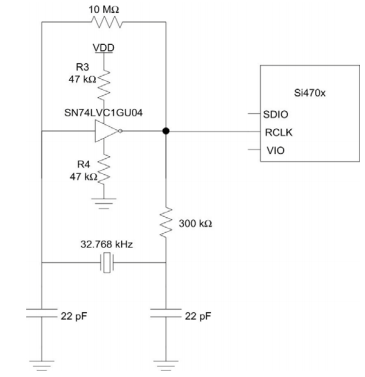 該電路采用無緩沖反相器,四個(gè)外部電阻,兩個(gè)電容和一個(gè)32.768KHZ.