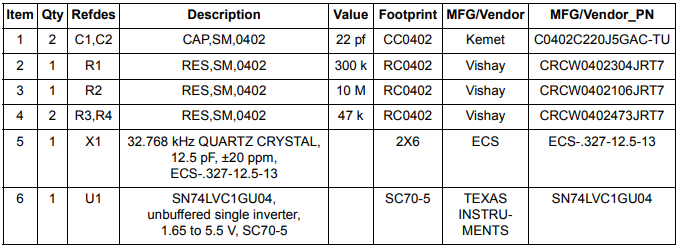 圖1顯示了外部振蕩器電路原理圖.表1顯示了包含組件值,供應(yīng)商和描述的物料清單.