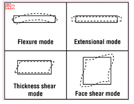 圖1表示培養(yǎng)(人造)石英晶振的頂視圖,Y軸是機械軸,如圖所示從一端到另一端延伸,從石頭上切下Y形切割板,使得厚度尺寸平行于Y軸,Y切割板的頻率主要由它們的厚度決定,然而,Y切割板表現(xiàn)出不希望的特性,使得它們不適合商業(yè)用途,因此目前使用的大多數(shù)板以略微旋轉(zhuǎn)的角度切割,導(dǎo)致板具有更理想的,可再現(xiàn)的屬性(最重要的是頻率穩(wěn)定性與溫度的關(guān)系),兩個最常見的單圈Y切口是AT切口和BT切口,從圖1中可以看出,它們在方向上幾乎彼此相對. 圖2說明了可以在石英板中引起的各種振動模式,AT和BT板主要在厚度剪切模式下振動,然而,重要的是要理解,可以使任何石英板以一種或多種所示模式振動,甚至以兩種或更多種的某種組合振動,"其他"類型的振動可以通過電,機械,聲學,熱或這些因素的某種組合來感應(yīng),這些誘導(dǎo)響應(yīng)通常被稱為"耦合"或"不需要"模式,作為進一步的復(fù)雜性,每當厚度剪切模式通電時,任何單個旋轉(zhuǎn)的厚度剪切諧振器也將在面剪切模式下振動.