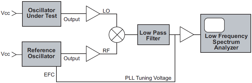 有許多方法可以測量或表達(dá)這種振蕩器噪聲現(xiàn)象,但是精密振蕩器最常見的方法是相位噪聲.相位噪聲在頻域中測量,繪制為信號振幅對頻率的關(guān)系圖.這是顯示在光譜分析儀上的表示.對于相對有噪聲的信號,如果測量帶寬設(shè)置正確,相位噪聲可以直接在頻譜分析儀上觀察到.然而,對于諸如大多數(shù)晶體振蕩器產(chǎn)生的干凈信號,分析儀寬帶本地振蕩器的噪聲高于待測源的噪聲,因此無法直接觀察到來自被測單元的噪聲.因此,必須采用一些提高測量系統(tǒng)靈敏度的方法. 實(shí)現(xiàn)這種靈敏度提高的常見方法是比較一個振蕩器和另一個振蕩器.這是大多數(shù)有源晶振商用相位噪聲測量系統(tǒng)的工作方式.一個非常低噪聲的參考振蕩器被調(diào)整到與被測單元完全相同的頻率.當(dāng)這兩個信號被饋入相位檢測器時,它們的相對相位被調(diào)整并鎖定在90度偏移處,載波頻率在混頻器中被抵消.在對高頻分量進(jìn)行濾波之后,僅保留已經(jīng)混合到基帶頻率的殘余噪聲調(diào)制.該噪聲信號然后被放大以增加靈敏度.由于高頻信號已經(jīng)通過混合和濾波過程被去除,因此殘余噪聲信號可以用非常低的帶寬分析器進(jìn)行檢查.