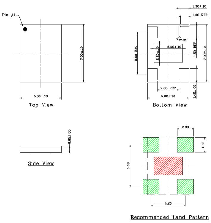 DSC1004AI5-125.0000T,Microchip高精度晶振,7050mm振蕩器,移動(dòng)應(yīng)用晶振,尺寸圖