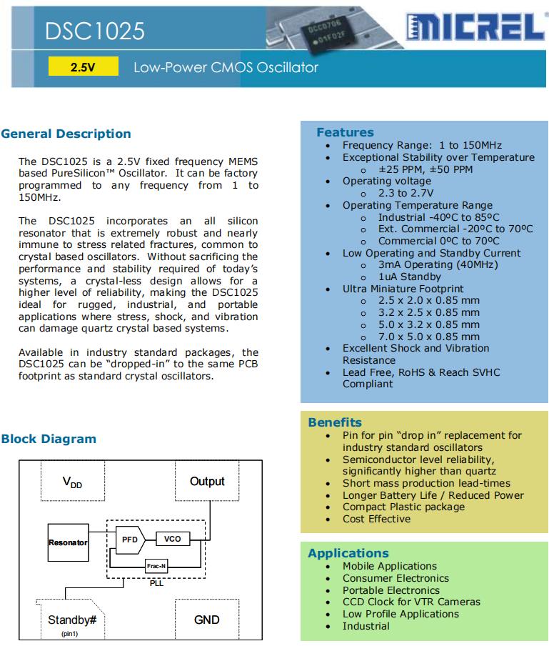 | DSC1025DI2-025.0000T | Microchip晶振 | DSC1025 | 25MHz | 2.5V |