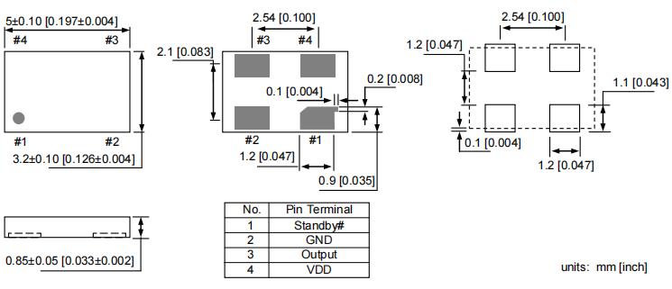 DSC1025BC2-133.0000T,Microchip低功耗晶振,5032mm振蕩器,移動(dòng)應(yīng)用晶振,尺寸圖