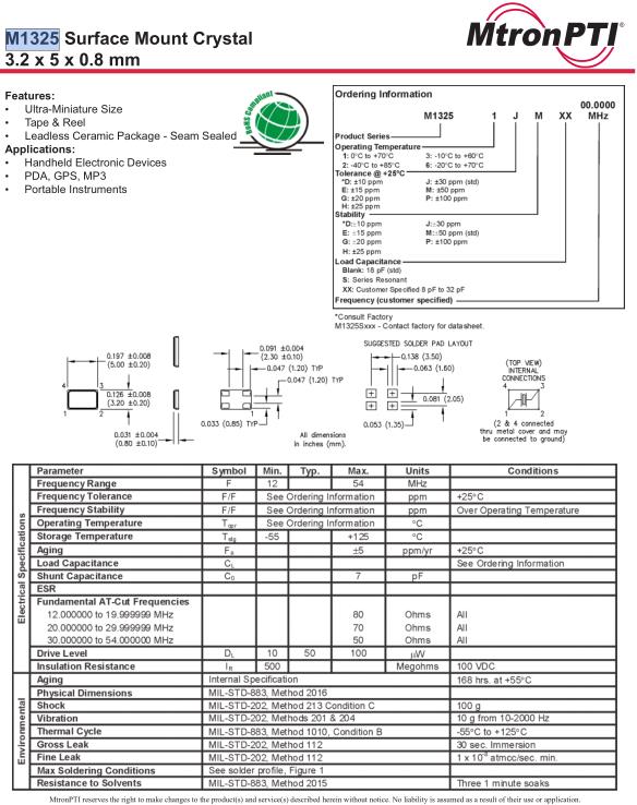 MtronPTI晶振,M1325晶振,M13251JMXX26.0000MHz晶振,智能手機晶振,產(chǎn)品具有高精度超小型的表面貼片型石英晶體振蕩器,最適用于移動通信終端的基準時鐘等移動通信領域.比如智能手機,無線通信,衛(wèi)星導航,平臺基站等較高端的數(shù)碼產(chǎn)品,晶振本身小型,薄型具備各類移動通信的基準時鐘源用頻率,貼片晶振具有優(yōu)良的電氣特性,耐環(huán)境性能適用于移動通信領域,滿足無鉛焊接的高溫回流溫度曲線要求.