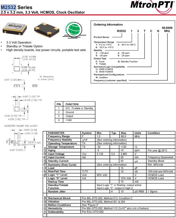 麥特倫皮晶振,M2532晶振,M253213TCN12.0000MHz晶振,小型SMD有源晶振,從最初超大體積到現(xiàn)在的7050mm,6035mm,5032mm,3225mm,2520mm體積,有著翻天覆地的改變,體積的變小也使產(chǎn)品帶來了更高的穩(wěn)定性能,接縫密封石英晶體振蕩器,精度高,覆蓋頻率范圍寬的特點(diǎn),SMD高速自動(dòng)安裝和高溫回流焊設(shè)計(jì),Optionable待機(jī)輸出三態(tài)輸出功能,電源電壓范圍:1.8V~5V,高穩(wěn)定性,低抖動(dòng),低功耗,主要應(yīng)用領(lǐng)域:無線通訊,高端智能手機(jī),平板筆記本W(wǎng)LAN,藍(lán)牙,數(shù)碼相機(jī),DSL和其他IT產(chǎn)品的晶振應(yīng)用,三態(tài)功能,PC和LCDM等高端數(shù)碼領(lǐng)域,符合RoHS/無鉛.