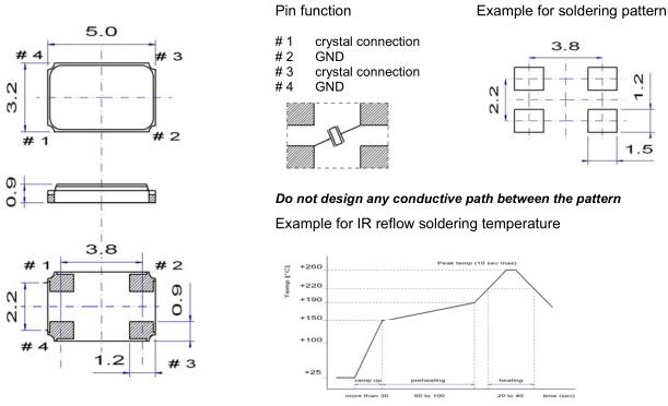 | Frequency tolerance | ±5 ~ ±30 ppm @ +25 °C |
