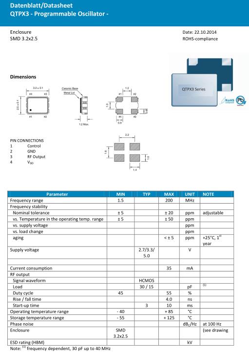 德國Quarztechnik Crystal(夸克晶振)公司成立已有50多年的歷史,在石英晶體振蕩器制造方面具有頗深的造詣.除此之外Quarztechnik晶振不僅生產(chǎn)晶體還研發(fā)生產(chǎn)溫補晶振,OSC晶振,有源晶振等元件,并做到價格低廉,性能優(yōu)越.同時擁有龐大的生產(chǎn)力以及快速交付的能力.夸克晶振,QTPX3晶振,可編程振蕩器.