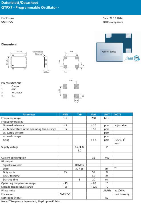 Quarztechnik晶振,QTPX7晶振,高品質(zhì)晶振,小型SMD有源晶振,從最初超大體積到現(xiàn)在的7050mm,6035mm,5032mm,3225mm,2520mm體積,有著翻天覆地的改變,體積的變小也使產(chǎn)品帶來了更高的穩(wěn)定性能,接縫密封石英晶體振蕩器,精度高,覆蓋頻率范圍寬的特點,SMD高速自動安裝和高溫回流焊設計,Optionable待機輸出三態(tài)輸出功能,電源電壓范圍:1.8V~5V,高穩(wěn)定性,低抖動,低功耗,主要應用領域:無線通訊,高端智能手機,平板筆記本W(wǎng)LAN,藍牙,數(shù)碼相機,DSL和其他IT產(chǎn)品的晶振應用,三態(tài)功能,PC和LCDM等高端數(shù)碼領域,符合RoHS/無鉛.