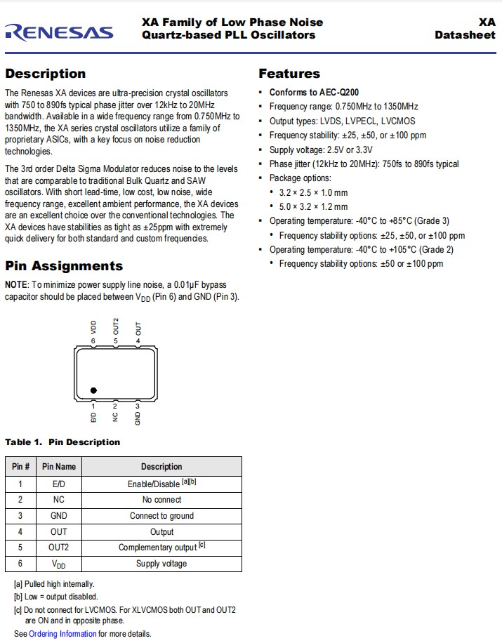 低相位噪聲晶振,XAL335106.250000I,Renesas石英貼片晶振,6G車載控制器晶振,LVDS貼片振蕩器,參數(shù)表