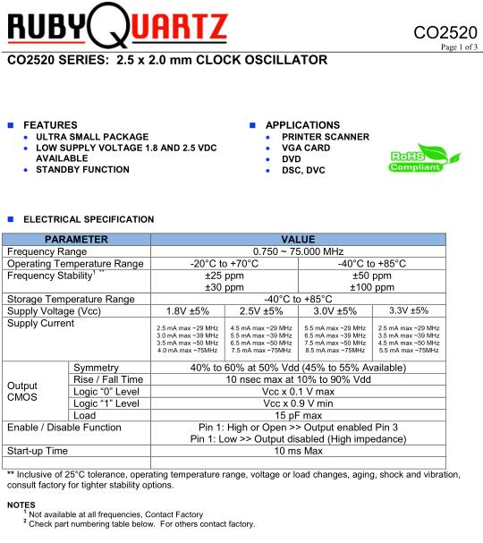 Rubyquartz晶振,CO2520晶振,CO2520-12.000-25-50-TR晶振,有源晶振,是指晶體本身起振需要外部電壓供應(yīng),起振后可直接驅(qū)動(dòng)CMOS集成電路,產(chǎn)品本身已實(shí)現(xiàn)與薄型IC(TSSOP封裝,TVSOP封裝)同樣的1mm厚度,斷開時(shí)的消費(fèi)電流是15µA以下,編帶包裝方式可對(duì)應(yīng)自動(dòng)搭載及IR回流焊接(無鉛對(duì)應(yīng))產(chǎn)品有幾種電壓供選1.8V,2.5V,3V3.3V,5V,以應(yīng)對(duì)不同IC產(chǎn)品需要.
