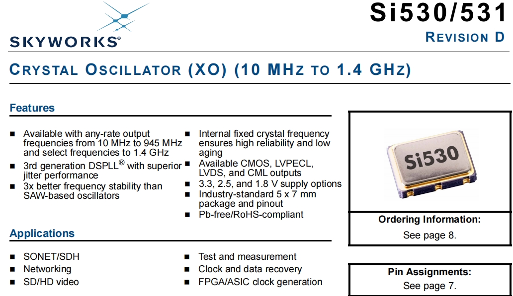 SkyworksLVDS晶振,Si531游戲設(shè)備晶振,531FC300M000DG