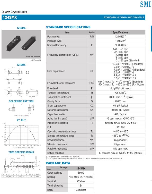 SMI晶振,124SMX晶振,低抖動晶振,32.768K時鐘晶體具有小型,薄型,輕型的貼片晶振表面音叉型晶體振蕩器,產(chǎn)品具有優(yōu)良的耐熱性,耐環(huán)境特性,可發(fā)揮晶振優(yōu)良的電氣特性,符合RoHS規(guī)定,滿足無鉛焊接的高溫回流溫度曲線要求,金屬外殼的封裝使得產(chǎn)品在封裝時能發(fā)揮比陶瓷振蕩器外殼更好的耐沖擊性.