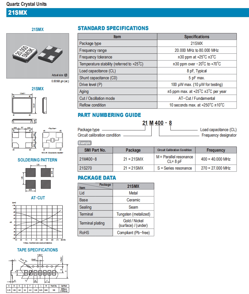日本SMI晶體\21M250-8\6G無線晶振\21SMX小體積晶振 參數(shù)表