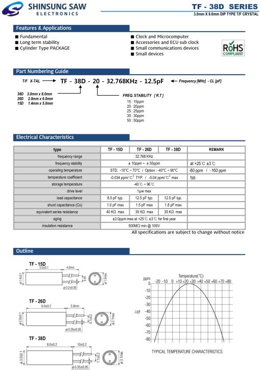 SHINSUNG Crysta成立于1990年,并開始生產(chǎn)石英晶振,濾波器,石英晶體振蕩器,向客戶提供最新的最新的新松貼片晶振或通孔型晶振單元,時(shí)鐘有源晶振,溫補(bǔ)晶振等晶振產(chǎn)品,一直以供應(yīng)優(yōu)質(zhì)晶振產(chǎn)品為信念,不斷給社會(huì)創(chuàng)造價(jià)值.Shinsung晶振,TF-38D晶振,TF-38D-20-32.768KHz-10pF晶振..jpg)