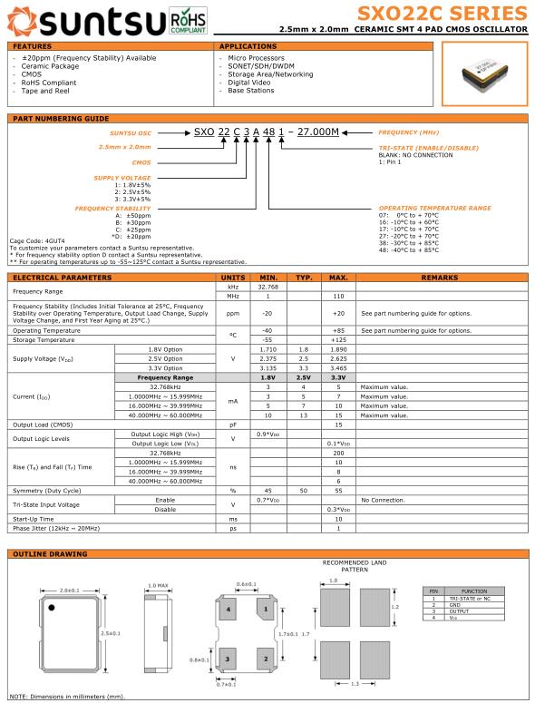 美國Suntsu晶振公司成立于2002年,是新生代頻率元器件廠商.suntsu Crystal也稱松圖晶振,總部位于美國加利福尼亞奧蘭治縣.與中韓臺合資成立.并專注于有源晶振,石英晶體振蕩器,SMD晶振等元件.Suntsu晶振,SXO22C晶振,SXO22C3A481-26.000M晶振.