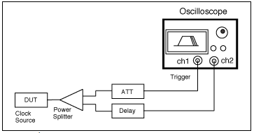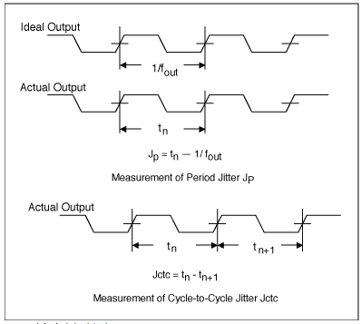 對于石英晶體振蕩器,抖動是一項重要的性能測量.有兩種最常用的抖動定義:周期抖動和周期間抖動,見圖3細節(jié).為了測量抖動,我們可以使用高速數(shù)字采樣示波器對大量數(shù)據(jù)進行采樣,并根據(jù)定義計算抖動.Tektronix(TDS7254)或Lecroy(Wavepro960)的示波器使用配備的軟件提供這些測量.我們還可以使用高速數(shù)字示波器來測量時域中的周期抖動.圖3顯示了設置.通過時域方法,我們無法測量周期到周期的抖動.但是,如果每個周期的晶振抖動噪聲是獨立且相同分布的,則周期間抖動是周期抖動的1.414倍.MAX9485可根據(jù)不同的音頻采樣頻率和頻率比例因子產(chǎn)生21種不同的輸出頻率.我們使用了圖4中所示的設置測量所有可能的輸出CLK頻率的周期抖動.