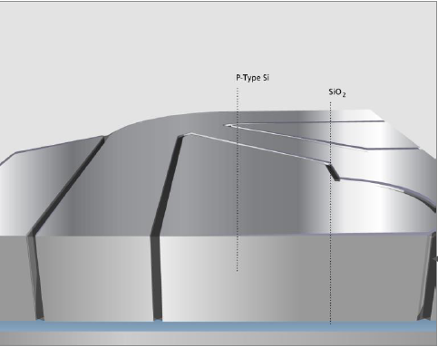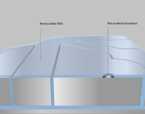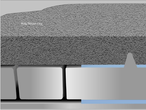 薄硅層生長在氧化物的頂部,精細的通風口穿過這些層形成圖案.通風口能夠去除諧振器周圍的氧化物,并位于諧振器上方,諧振器必須能夠自由振動.