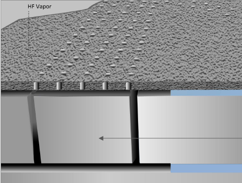 用氫氟酸蒸汽去除共振結(jié)構(gòu)周圍的氧化物.該步驟限定了諧振器工作的封閉真空腔的容積.諧振器和電極固定在襯底上時,氧化物不會被去除.