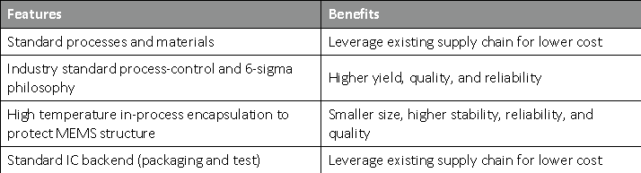 微機電系統(tǒng)第一工藝的氣密密封特征稱為密封,是在清潔的真空環(huán)境中在非常高的溫度下完成的.這導致諧振器的高穩(wěn)定性.使用陶瓷封裝或晶片鍵合的傳統(tǒng)低溫封裝會在封裝中留下?lián)]發(fā)性有機物和水殘留物,這會導致諧振器的質(zhì)量負載和頻率漂移.微機電系統(tǒng)第一與EpiSeal是唯一被證明的制造工藝,它生產(chǎn)的諧振器具有與石英晶體相當或超過石英晶體的穩(wěn)定性.