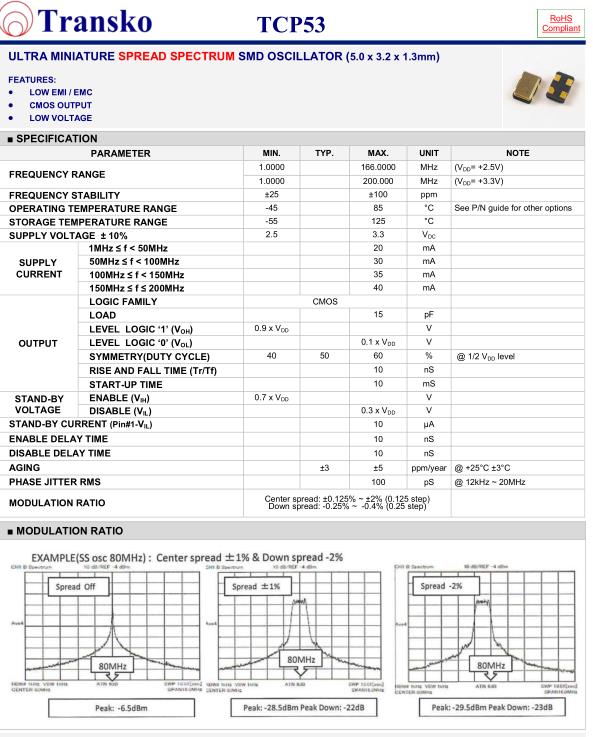 Transko晶振,TCP53晶振,TCP53-H50HM33ST-A-24.000M-TR晶振,5032mm體積的石英晶體振蕩器,有源晶振,該產品可驅動2.5V的溫補晶振,壓控晶振,VC-TCXO晶體振蕩器產品,電源電壓的低電耗型,編帶包裝方式,可對應自動高速貼片機自動焊接,及IR回流焊接(無鉛對應),為無鉛產品,超小型,質地輕.產品被廣泛應用到集成電路,程控交換系統(tǒng),無線發(fā)射基站.