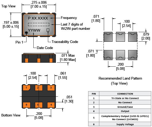威爾威7050mm晶振,FC7-T-C12000-P-D-D-2-R-X,低抖動(dòng)晶振,尺寸圖