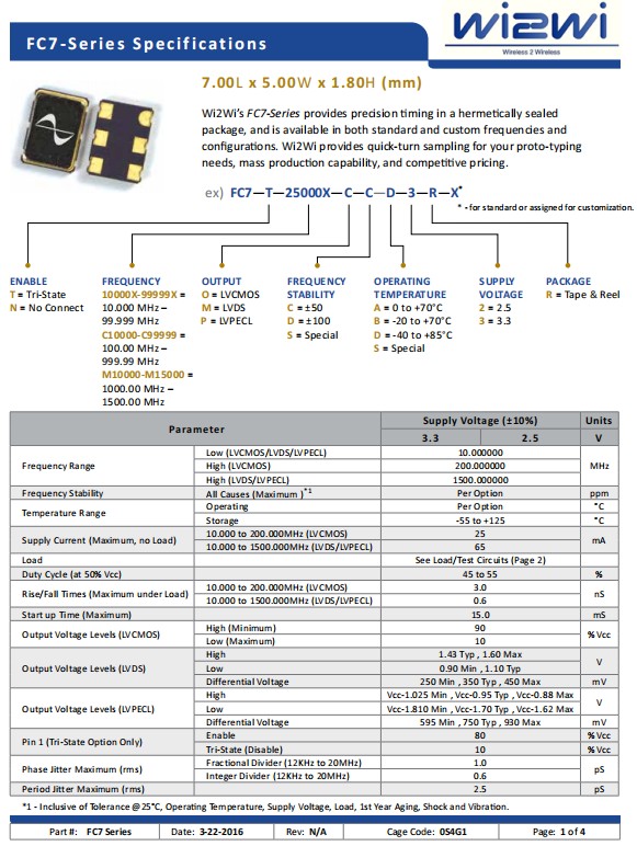 威爾威7050mm晶振,FC7-T-C12000-P-D-D-2-R-X,低抖動(dòng)晶振,參數(shù)表