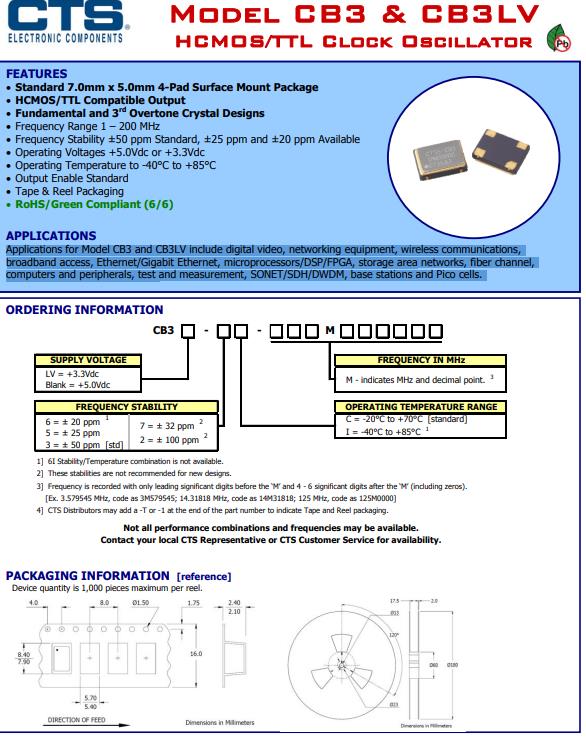 | CB3-3I-50M0000 | 美國CTS晶振 | CB3 | 50MHz | ±50ppm |