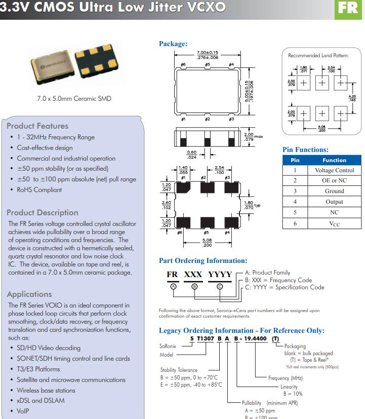 FR系列壓控振蕩器在廣泛的范圍內(nèi)實(shí)現(xiàn)廣泛的可拉性操作條件和頻率。裝置由一個(gè)密封的,石英晶體諧振器和低噪聲時(shí)鐘該設(shè)備可在磁帶和卷軸上使用包含在7.0 x 5.0mm陶瓷封裝。