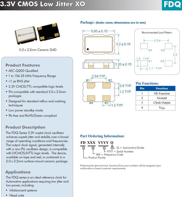 FDQ 系列是需要低抖動(dòng)和低功耗的汽車應(yīng)用的理想?yún)⒖紩r(shí)鐘