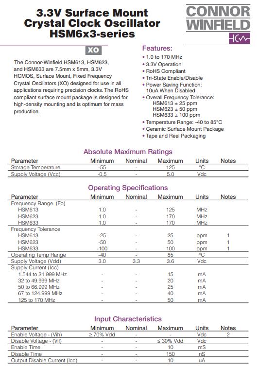 | HSM613-050.0M | Connor-Winfield振蕩器 | HSM6 | 50MHz | -40°C ~ 85°C |