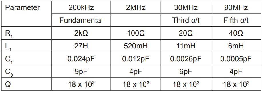 負載電容:晶體可以由制造商在fr校準,其中 它們表現(xiàn)為電阻性(或fs,非常接近fr),或用于諧振 對于容性負載,它們當然表現(xiàn)為感性。 后一種情況稱為負載諧振,如所示 用符號fL表示的一般術語;更具體地說,符號f30 例如,代表晶體的頻率 30pF容性負載下的諧振。